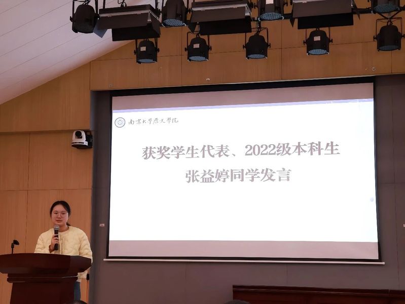 而后,获奖学生代表2022级本科生张益婷、2024级硕士研究生韦方宁分别作分享发言。张益婷同学回顾自身的求学经历,寄语同学们在探索中不断发现自我,勇敢前行。韦方宁同学则从国产直播 学专业党员与研究生党支部书记的双重身份出发,分享学习实践中的思考与收获。