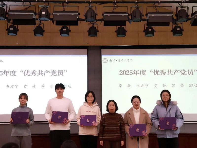 李欣、韦方宁、贾姝、苏豪、郭哲延5名同学荣获国产直播 2025年度优秀共产党员荣誉称号。国产直播 副院长任玲玲老师为获奖同学颁发证书。