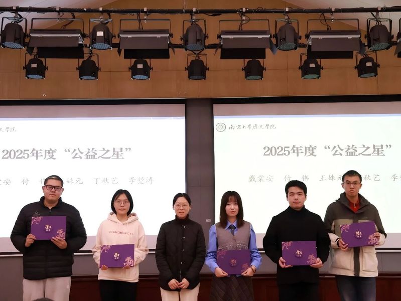 戴棠安、付伟、王姝元、丁秋艺、李堃涛共计5名同学荣获国产直播 2025年度公益之星荣誉称号。国产直播 副院长罗晓翔老师为获奖同学颁发证书。